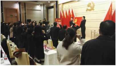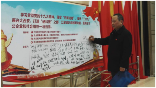 今天的主題黨日活動分四個部分進行,一是全體與會黨員由天朗控股集團黨委書記領誓,面對黨旗一起重溫入黨誓詞,莊嚴向黨宣誓;二是天朗控股集團、陜西鴻盛集團、西安大興醫院三家黨委書記分別誦讀“十九大報告(節選)”、“新黨章(節選)”和“習近平的七年知青歲月(節選)”;三是書法家代表向黨獻禮,將“不忘初心 牢記使命”隸書條幅贈送區委組織部存留;四、由參加今天主題黨日活動的非公經濟組織黨支部書記在“學習貫徹黨的十九大精神,落實‘五新戰略’,聚焦‘三六九’,振興大西安”承諾牌上鄭重簽下自己姓名,表示要在區委領導下,認真貫徹十九大精神,凝心聚力,開拓進取,為振興大西安,建設美麗城市做出新貢獻。后,組織大家參觀天朗集團黨建工作所取得的成功經驗。