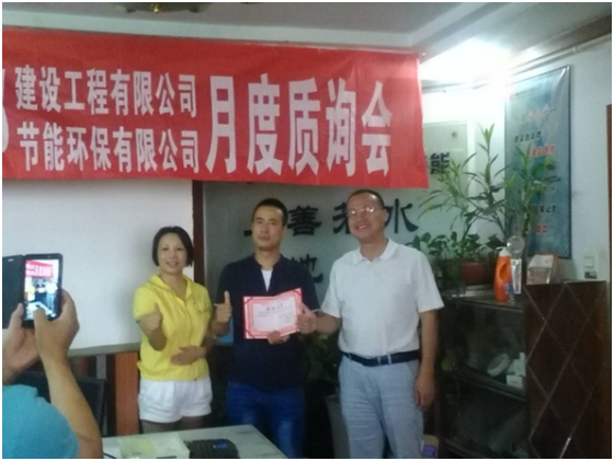 九月三日,公司八月份月度質詢會如期召開,與以往不同的是,今天的會議增加了研討(改善)會和表彰會二個環節,這是經過一個月來的系統優化升級帶來的新變化。研討會主要是針對一個月來工作所暴露出來的問題與不足,進行總結分析,制定措施,明確任務,增強信心;通報表彰在營銷、項目管理、配合服務以及文化傳播方面涌現出來的優秀員工,弘揚奉獻精神,傳播公司文化,使全體員工學有榜樣,趕有目標。“梅花隊”榮獲八月份“品牌分冠軍杯”,趙衛斌、任戰龍、董寶錢分別獲得優秀員工獎,公司總經理行礎向他們頒發了獎杯與獎狀,并合影留念。