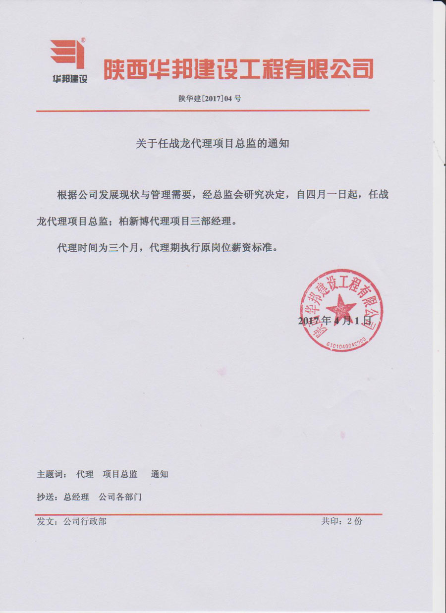 主頁 > 新聞中心 > 公司動態 > 關于任戰龍代理項目總監的通知