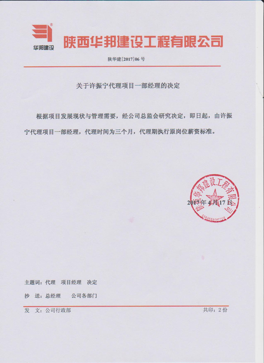 主頁 > 新聞中心 > 公司動態 > 關于許振寧代理項目一部經理的決定