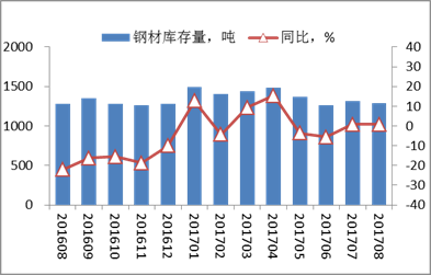 本月末,重點鋼鐵企業鋼材庫存量1288.02萬噸,比去年同期增加9.93萬噸,上升0.78%,比年初增加3.44萬噸,上升0.27%,比上月減少27.80萬噸,下降2.11%。