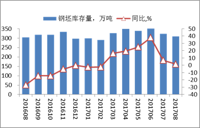 本月末,重點鋼鐵企業鋼坯庫存量308.81萬噸,比去年同期增加5.29萬噸,上升1.74%,比年初增加46.11萬噸,上升17.55%,比上月減少14.53萬噸,下降4.49%。