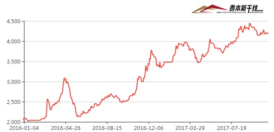 整個10月份內,鋼材價格比較平穩,在4150—4250元/噸之間小幅波動,表明市場趨于穩健,從而形成了相對平穩的價格區間,但整體成交量較上月有小幅下降,抑制了價格繼續上漲的空間。截至10月31日,西本鋼材指數收在4150元/噸,較上月末持平。對鋼廠來說,在目前的價格水平下,企業利潤很可觀,各大鋼廠紛紛發布了業績喜人的季報,如寶鋼股份三季度業績報告顯示,前三季度營業收入達到2518.37億元,同比增長43.12%,歸屬于上市公司股東的凈利潤116.68億元同比增長95.52%;鞍鋼股份前三季實現營收605.06億元,同比增長47.44%,凈利32.85億元,同比增長236.23%;山東鋼鐵三季報顯示,前三季營業收入為439億元,同比增長21.44%%,凈利潤為10.73億元,同比增長4031.60%。