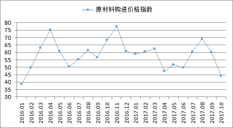 10月份鋼鐵行業PMI生產指數為58.3%,較上月小幅下降1.5個百分點,仍屬于較高水平,該指數已連續9個月處于擴張狀態。與生產相關的采購活動則呈現一定的收縮,本月原材料采購量指數為56.1%,較上月下降2.8個百分點;原材料進口指數為49.6%,較上月下降1.6個百分點,也是自今年5月份以來首次回落到50%以下;原材料庫存指數為48.3%,較上月下降1.8個百分點。從以上四個指數變化來看,本月鋼鐵生產較為積極,但隨著北方地區采暖季限產政策的逐漸深入,鋼廠原料補庫的積極性減弱,后期生產或將有所趨緩。