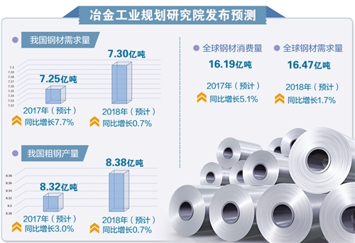 冶金工業(yè)規(guī)劃研究院院長李新創(chuàng)認為,2018年,我國經(jīng)濟發(fā)展將保持平穩(wěn)較快增長態(tài)勢,主要下游行業(yè)鋼材需求仍將持續(xù)增長,但增速放緩,2018年鋼材需求總量預計會小幅增長。