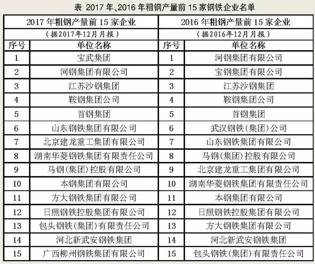2017年粗鋼產量前15的企業有了這些變化