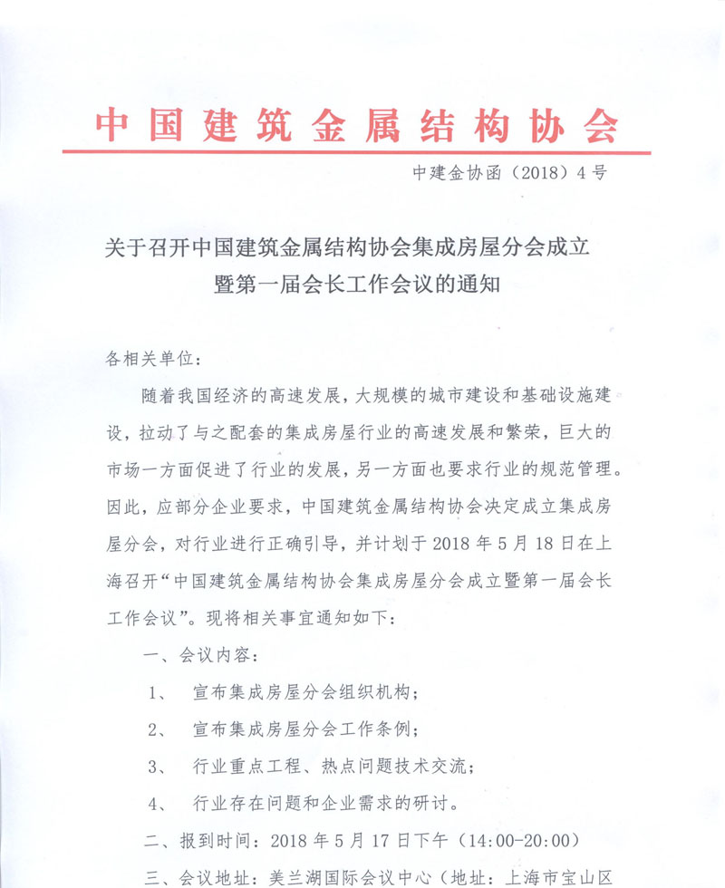 關(guān)于召開中國建筑金屬結(jié)構(gòu)協(xié)會集成房屋分會成立暨次會長工作會議通知