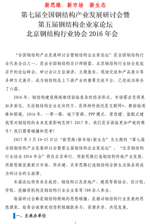 第七屆全國鋼結構產業發展研討會暨第五屆鋼結構企業家論壇將于明年3月舉行