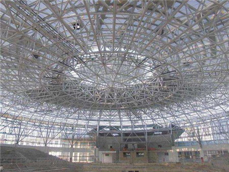 在抗震設防烈度為7度的地區,可以不進行鋼結構網架水平抗震驗算。在抗震設防烈度為8度的地區,對于周邊支承的60米以下中小跨度鋼結構網架可以不進行水平抗震驗算;在抗震設防烈度為9度的地震區,對各種鋼結構網架都需要進行水平抗震驗算。在抗震設防烈度為6度或7度的地區,網架屋蓋結構可以不進行豎向抗震驗算;在抗震設防烈度為8度或9度的地區,網架屋蓋結構需要進行豎向抗震驗算。還需要根據具體情況,對溫度變化、支座沉降及施工安裝荷載等作用下的內力、位移進行計算。