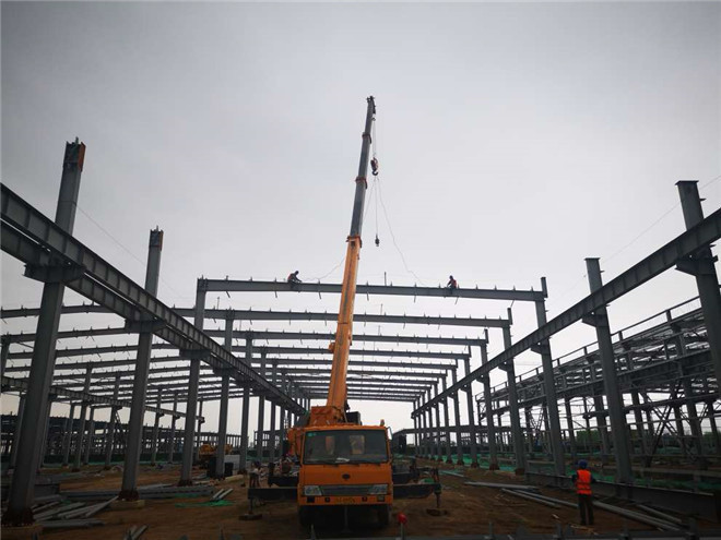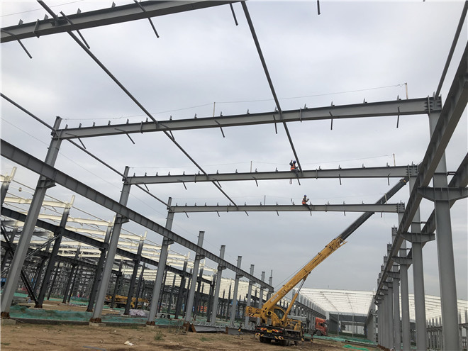 鋼結構廠房在建項目名稱:吉利鋼結構廠房主梁吊裝及墻面檁條安裝