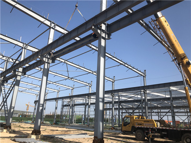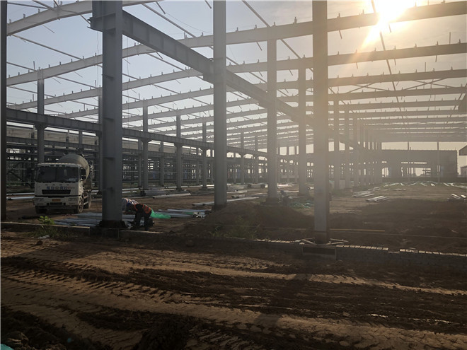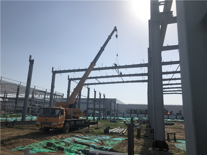 鋼結構廠房在建項目名稱:吉利鋼結構廠房主梁、行車梁吊裝及校正